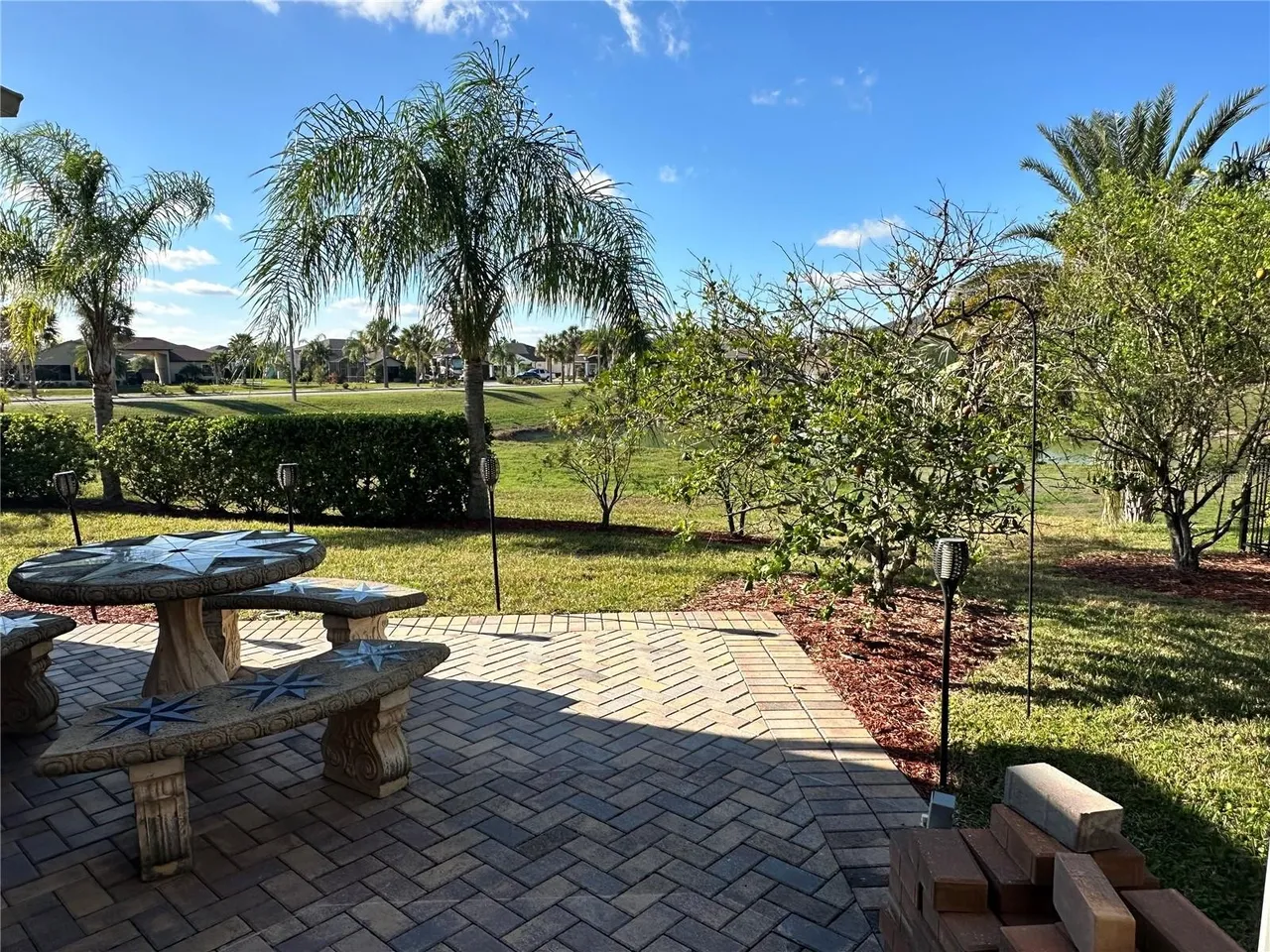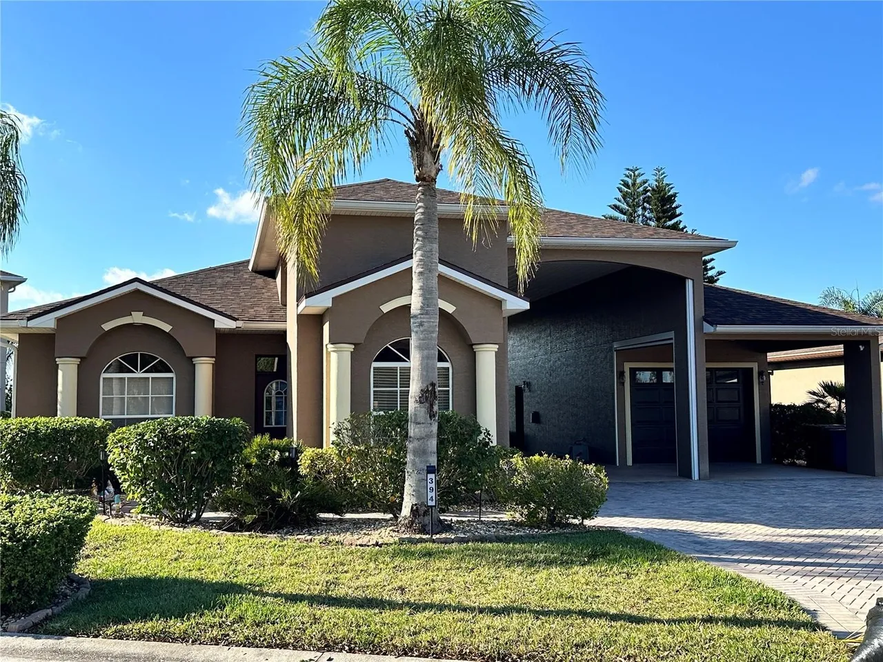 Come and enjoy the RV lifestyle at the beautiful 55+ active community of Mt. Olive Shores North. This updated custom-built 3 bedroom/2 bathroom home with a spectacular water view. It has an open Living/Dining/Kitchen floor plan with sliding doors that leads into the 27 X 12 glassed lanai/Florida room that has a wonderful view of a small garden like area along with a pond/fountain water view. This beautiful home is move-in ready. New roof in 2025, new kitchen appliances, under cabinet LED lighting, WiFi sprinklers, updated lighting fixtures throughout, and much more. It's a must see! The RV port measures 15 X 56 with all hookups and electric screens for privacy and protection. Attached to the RV port is a one car garage with workshop area and a car port area. The community offers 2 clubhouses with pools/hot tubs, pickle ball courts, fitness center, movie theater, dog park, and planned social events. A truly active 55+ community for RV enthusiasts. Don't miss this one! Call TODAY to schedule an appointment to see this beautiful home!