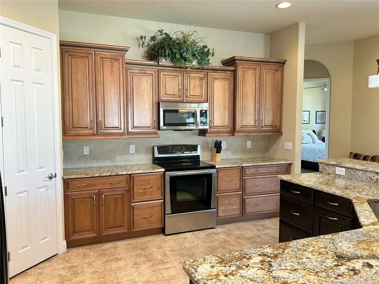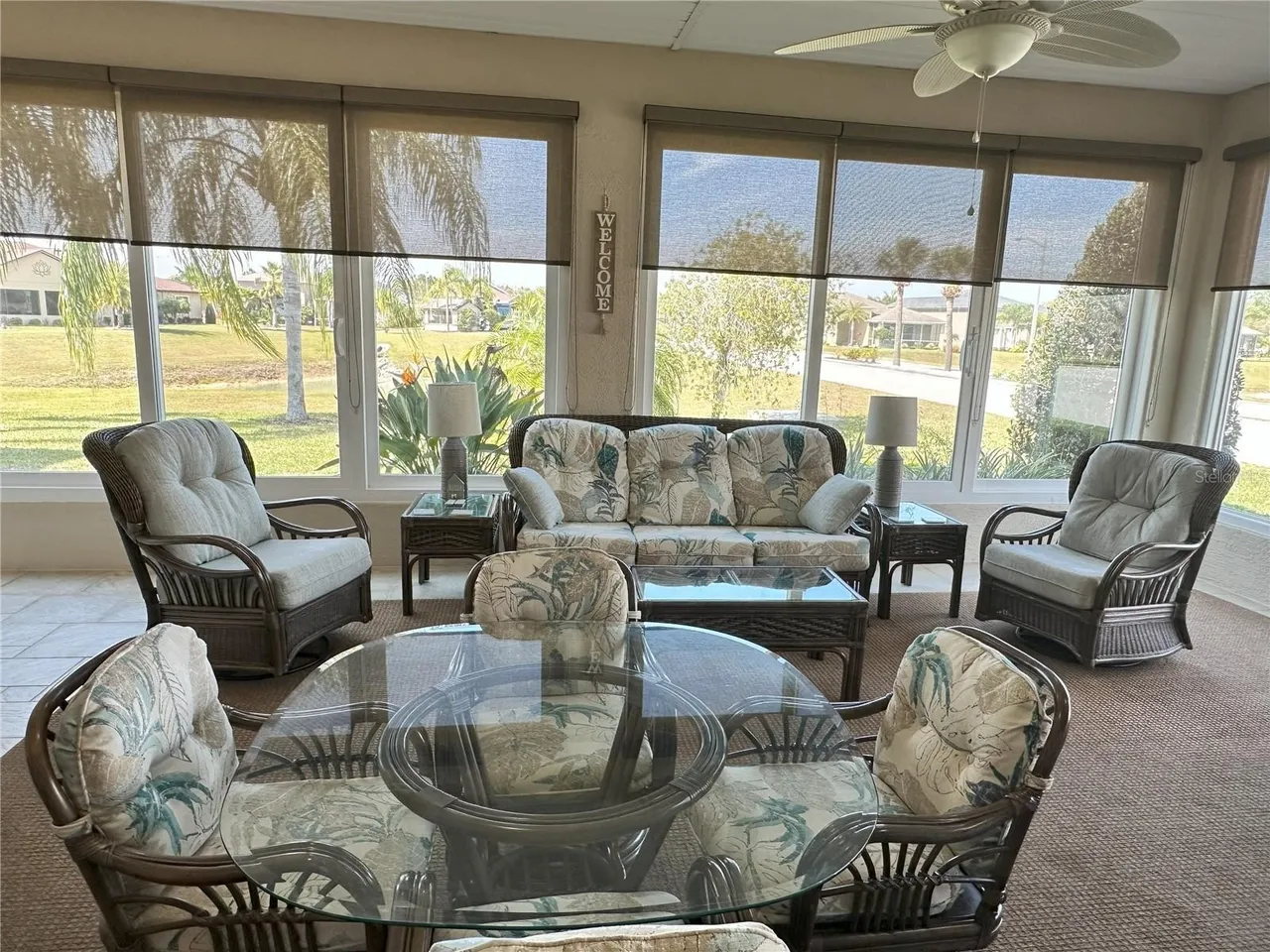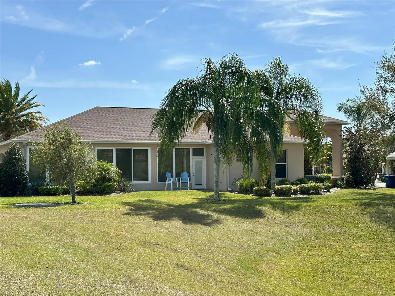 This beautiful home is a must see! Located in the sought after community of Mt. Olive Shores North, a 55+ deed restricted community. This 4 bed/3 bath is very spacious at just over 2200 square feet. The main entry to the home leads to a large open kitchen and eating area with granite counter tops. The lanai was enclosed for added living space. This home has four bedrooms and three baths which make it the perfect home for family and friends to enjoy the beautiful Florida weather. The RV port is approximately 16′ x 55 and has a two car garage. The roof was just replaced in 2024 and it has a transferable warranty. The A/C unit was replaced in 2021 and new irrigation and sod was laid in 2023. This home comes partially furnished including the kitchen table and chairs plus barstools. Outdoor front porch table and chairs and front room furniture. Located on a corner directly across from the clubhouse with an open area view from the back of the house. Call for an appointment today to see this wonderful home