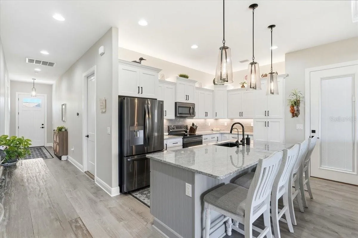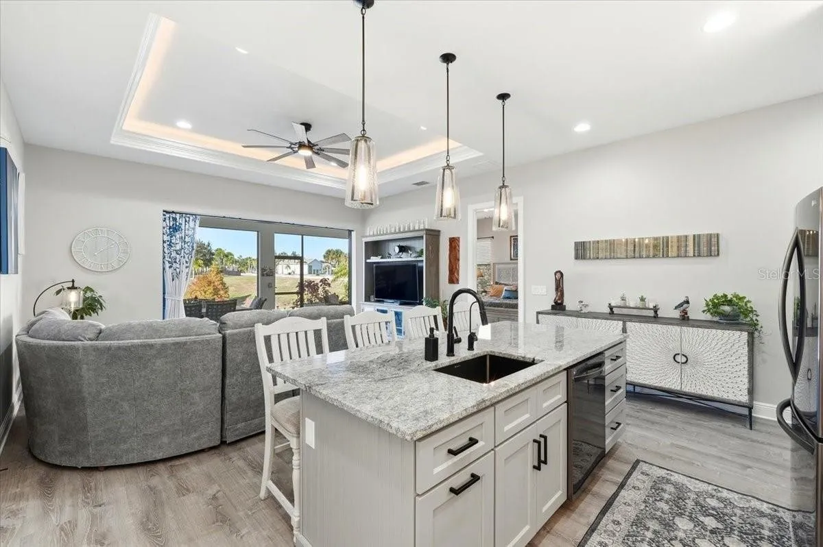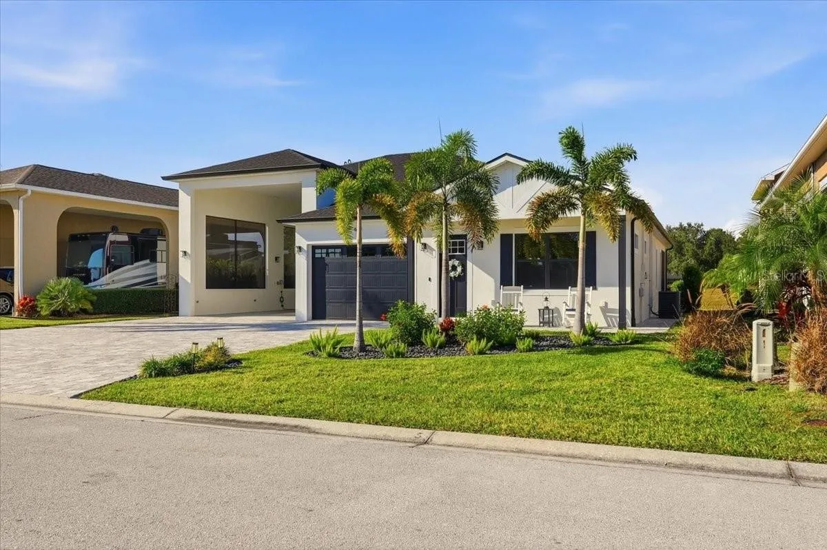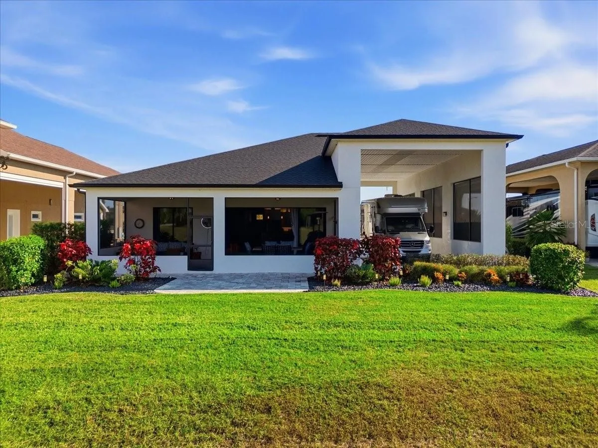 This home is move in ready! If you are looking for the perfect winter getaway or ready to move to sunny Florida than this is the one. Located in the sought after community of Mt. Olive Shores North, an upscale RV community. This home was built in 2023 with high end finishes and is in spectacular condition. With a second bedroom and bathroom for guests to enjoy some privacy when visiting. The primary bedroom and bathroom are conveniently located towards the back of the home. The laundry room is located in the primary suite for convenience. Sliding glass doors give you a beautiful view to the patio area from both the living room and the primary bedroom. With the sliding doors completely open the size of your entertaining space just doubled. The RV port is extra wide with plenty of room to park your motorhome and an additional vehicle or golf cart. Call today for an appointment to see this beautiful home.