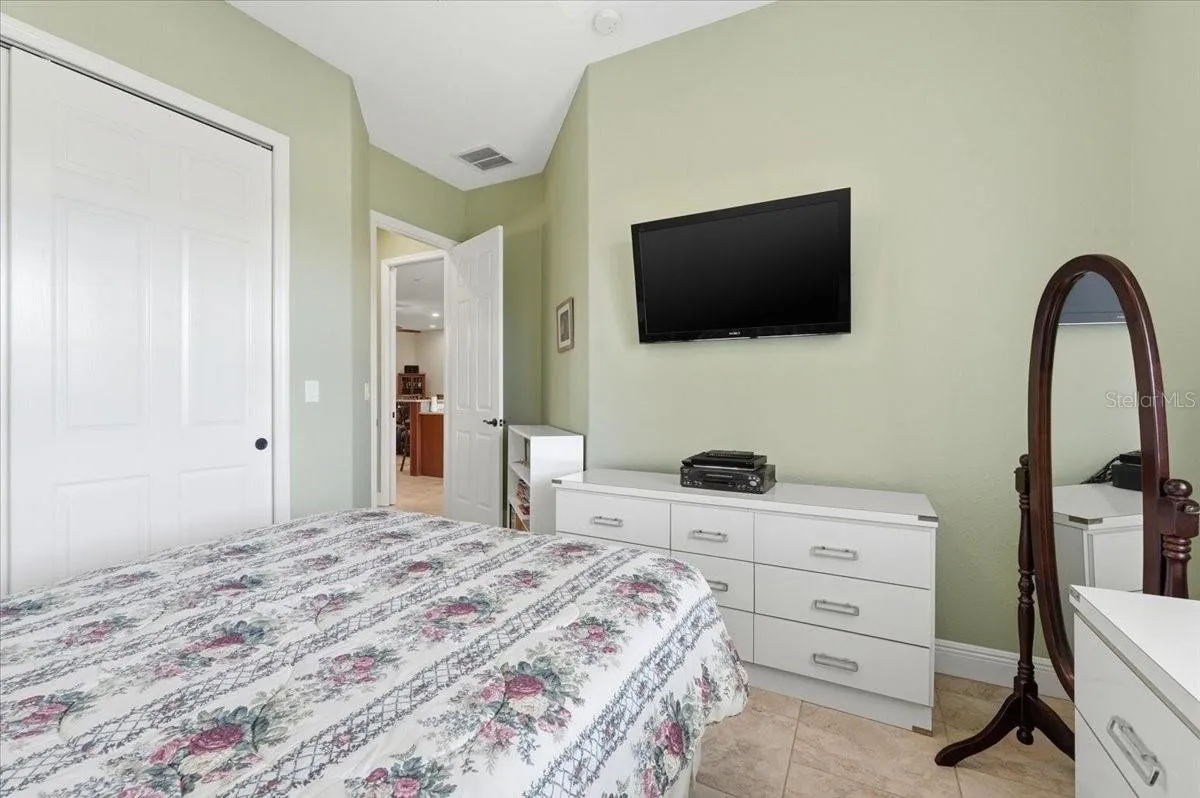 This exceptional residence boasts a number of desirable qualities, beginning with an enclosed RV garage. This provides secure and convenient storage for your recreational vehicle, protecting it from the elements and ensuring its longevity. Beyond the RV garage, the home itself offers a comfortable and stylish living space. It features two bedrooms and two bathrooms, along with a generously sized den or flex room that can be adapted to suit your individual needs, whether it be a home office, hobby room, or guest space. The exterior has also been recently painted, enhancing its curb appeal and ensuring a fresh, well-maintained appearance. The kitchen is a true highlight, equipped with a double oven and stunning quartz countertops. The large island provides ample workspace and serves as a natural gathering point. Plantation shutters throughout the home add a touch of elegance and provide excellent light control and privacy. Furthermore, the property includes a water softener, contributing to the overall comfort and convenience of daily living. And for enjoying the beautiful outdoors, there's a lovely lanai, perfect for relaxing and entertaining. I believe this property offers a compelling combination of features and value. Please don't hesitate to contact me to discuss this opportunity further.