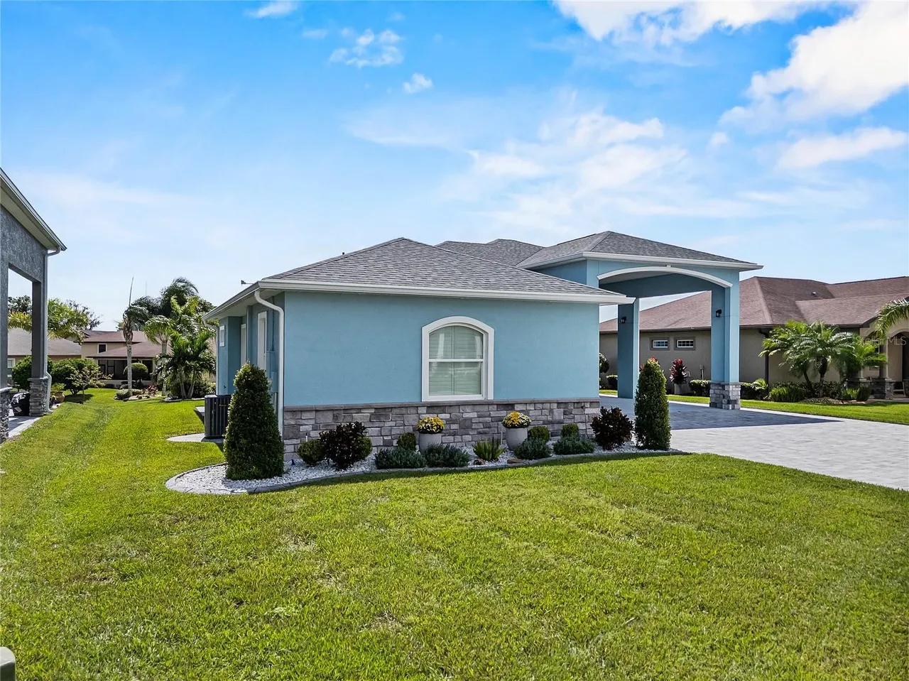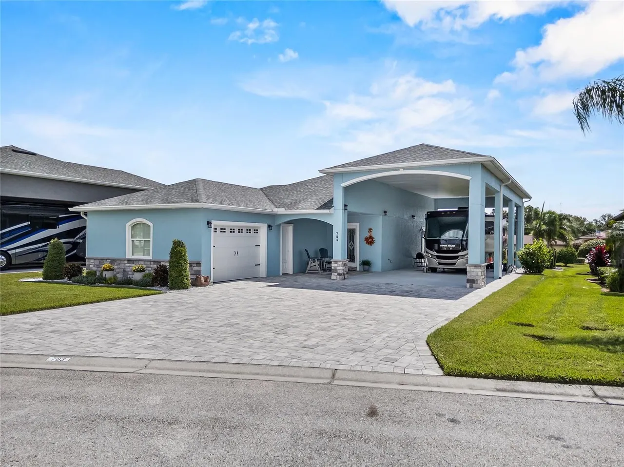 We are pleased to present an exceptional opportunity to acquire a recently constructed, move-in-ready residence within the highly desirable community of Mt. Olive Shores North. Built in 2022, this property offers the perfect winter haven for RV enthusiasts. This cozy home, encompassing just over 1, 300 square feet, boasts an intelligently designed open floor plan, ideal for effortless entertaining. The residence features one bedroom and one and a half bathrooms, expertly configured to maximize space and functionality. A significant highlight of this property is the expansive RV port, measuring approximately 56 feet in length and 20 feet in width. This substantial space comfortably accommodates a large RV, along with a golf cart or additional vehicle as needed. A 1.5 car garage provides secure storage, easily accommodating a golf cart and offering convenient access to extra storage, a water softener, and a utility sink. The interior of the home is adorned with modern, neutral finishes, creating a bright and inviting atmosphere. The screened lanai is perfect for relaxing and enjoying the view. Given the exceptional features and prime location, we anticipate considerable interest in this property. We encourage you to contact us at your earliest convenience to schedule an appointment for a private viewing. This opportunity will not last long.